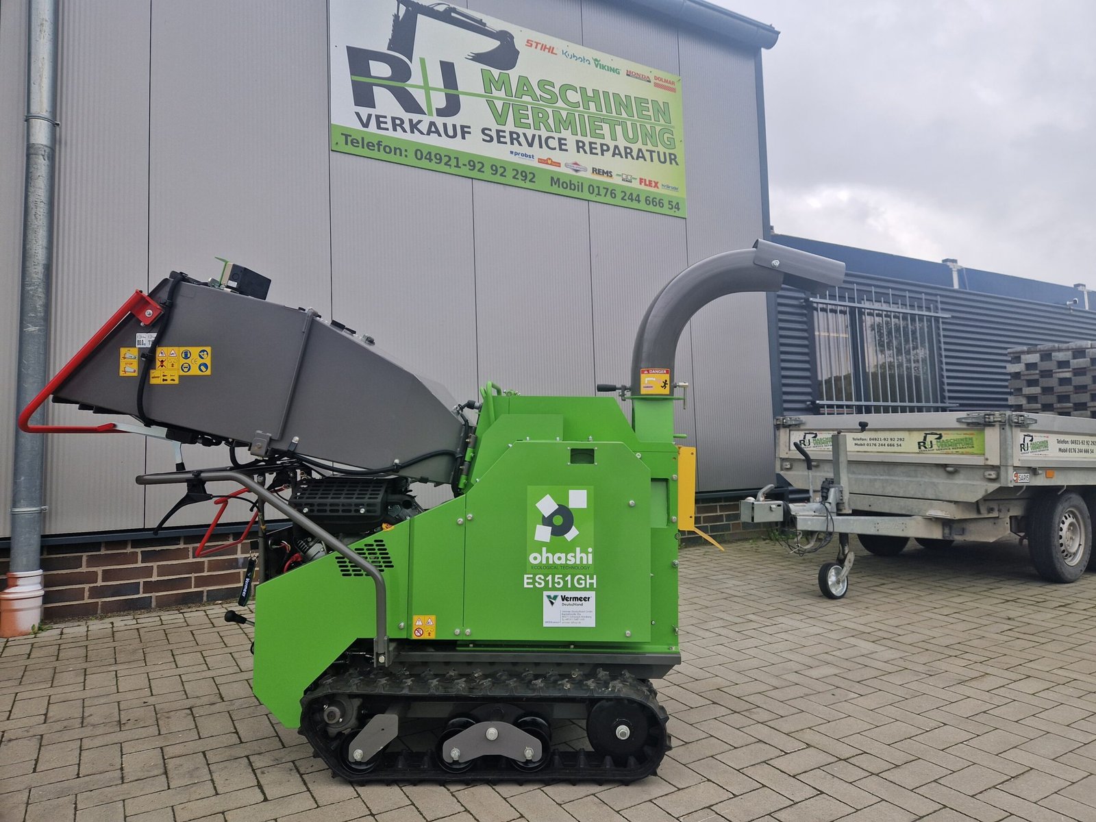 Der Ohashi ES151GH ist ein kompakter, leistungsstarker Raupen-Holzhäcksler/-schredder, entwickelt für den professionellen Einsatz in Landschaftspflege, Garten- und Forstarbeiten. Er zeichnet sich durch seine schmale Bauweise, hydraulisch angetriebenes Raupenfahrwerk und mobile Einsatzfähigkeit aus.